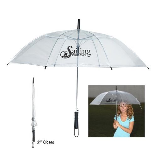 46" Arc Clear Umbrella Design 46" Arc Clear UmbrellaCustom lanyard are the most popular and economical lanyard we have, these polyester lanyards are perfect for conferences, trade shows or as identification for building entrances. You can choose between one of our basic lanyard attachment free of charge that include an J-hook clip, Lobster clip and Heavy duty trigger clip, and Badge Holder options attached with it.
